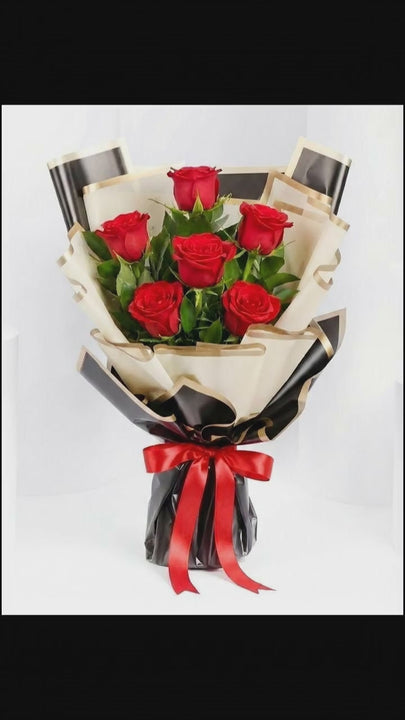A charming romantic bouquet featuring 6 fresh red roses, perfect for expressing love and heartfelt emotions on Valentine’s Day or any special moment.
